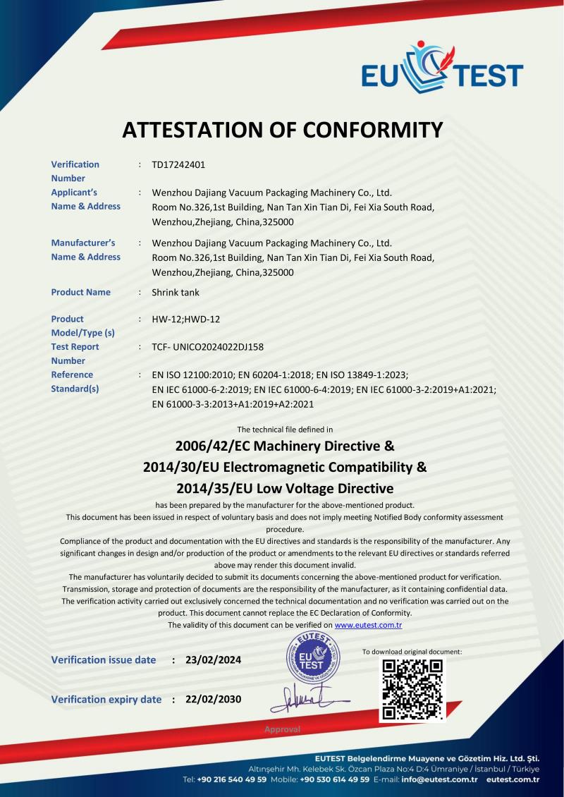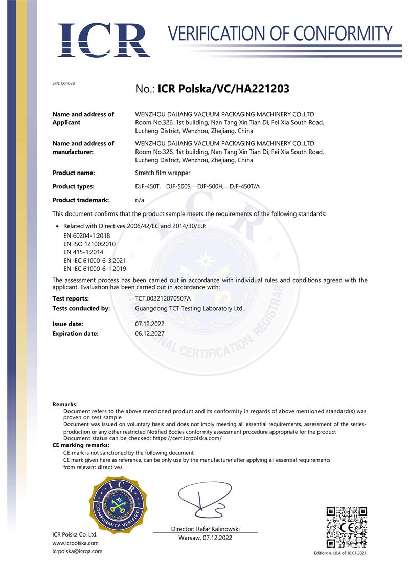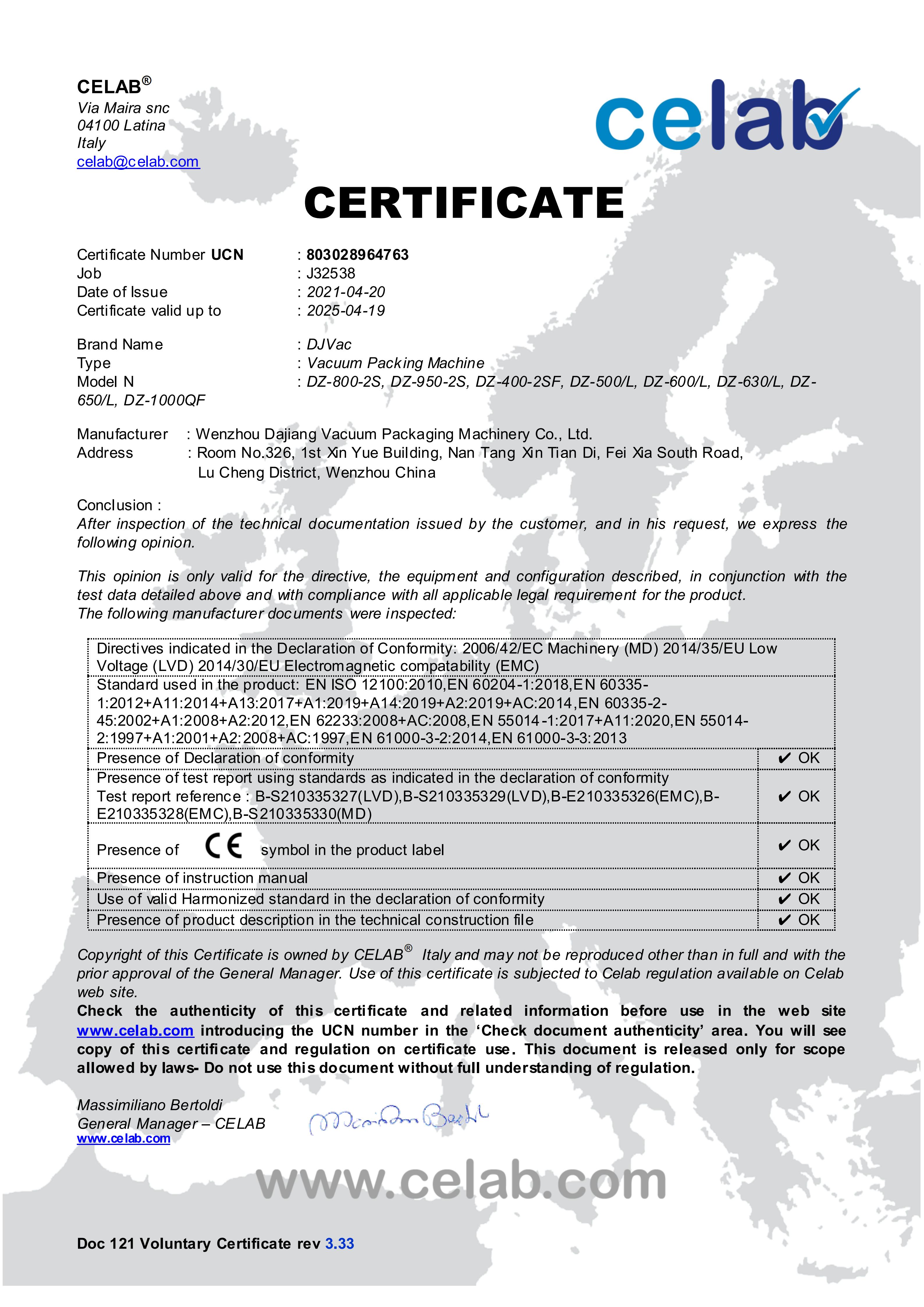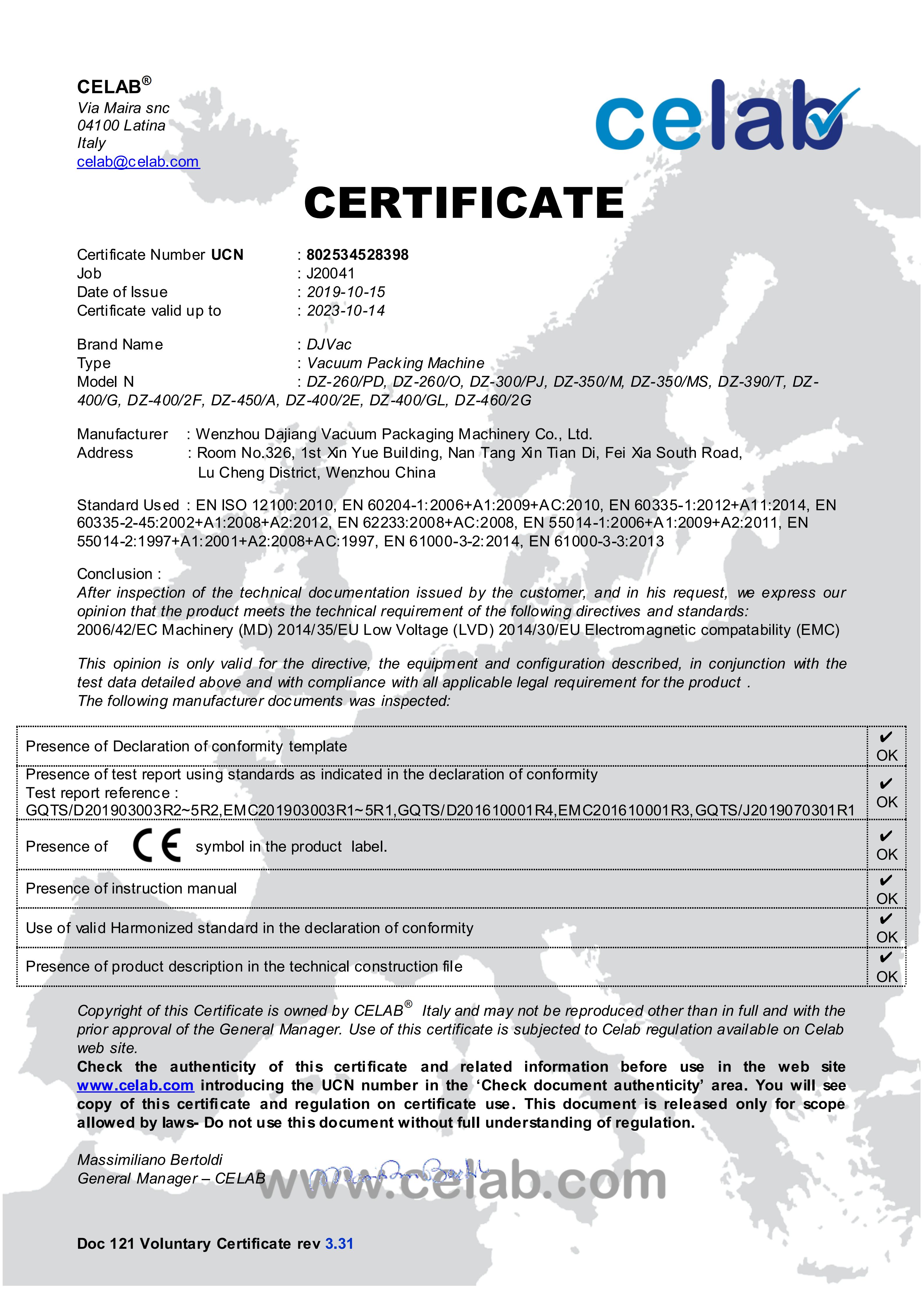 We have brilliant achievements under the support and trust of our customers as well as the hard-working of the DAJIANG staff. We awarded “2018-2019 Foreign Trade Credit Enterprise”, are a new high-tech enterprise and have several patent certificates, and are one of China Food And Packaging Machinery Industry Association director units.