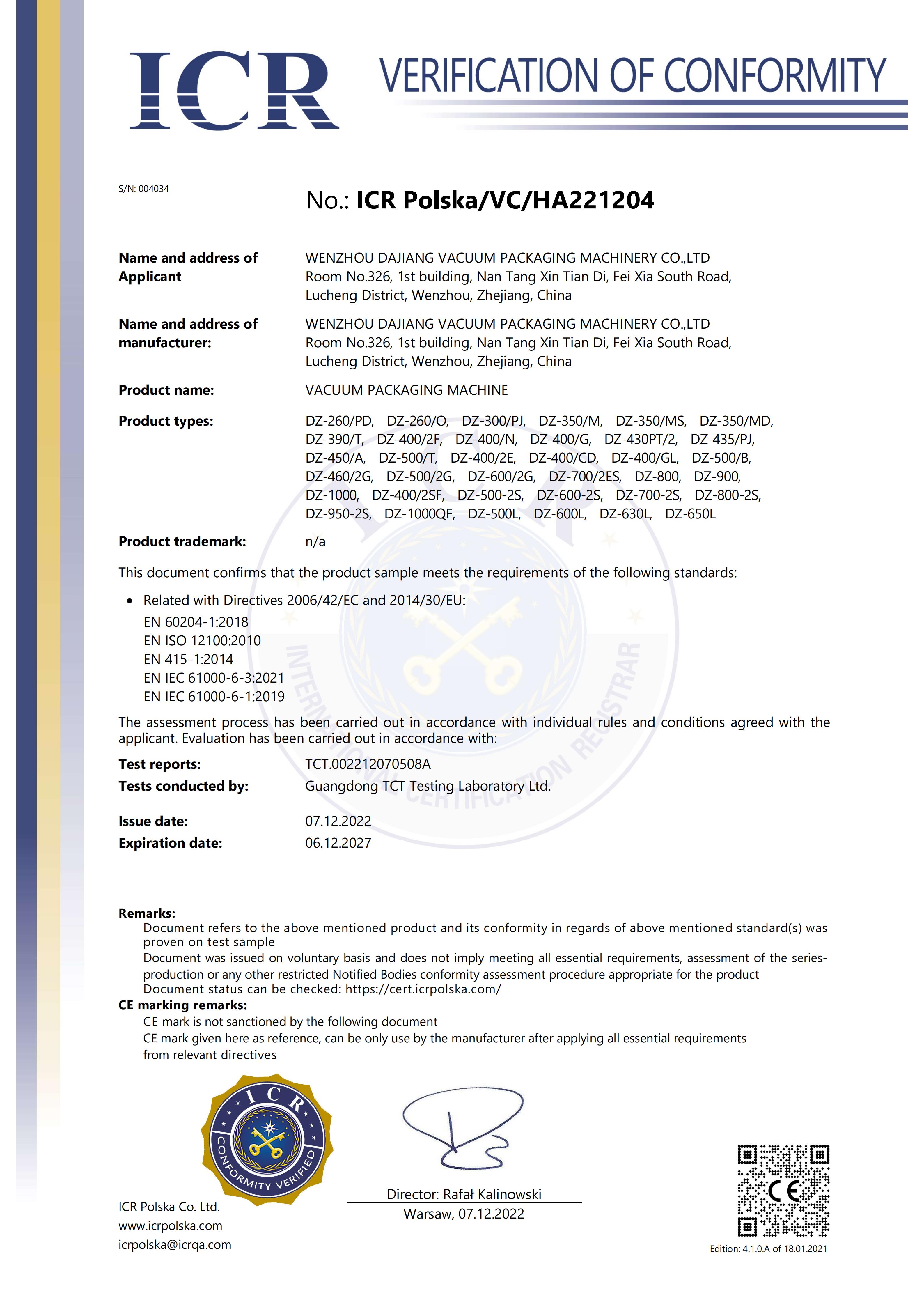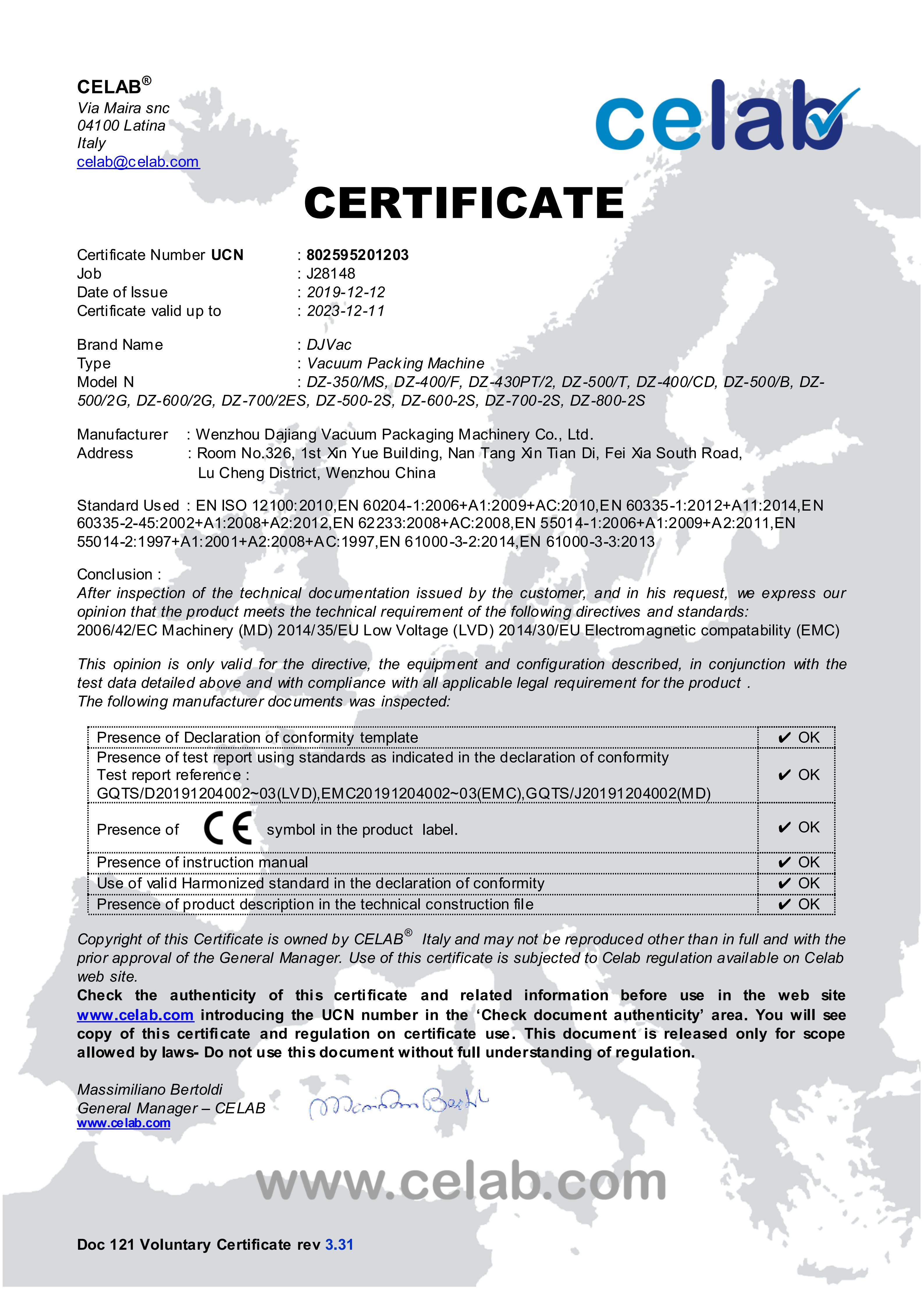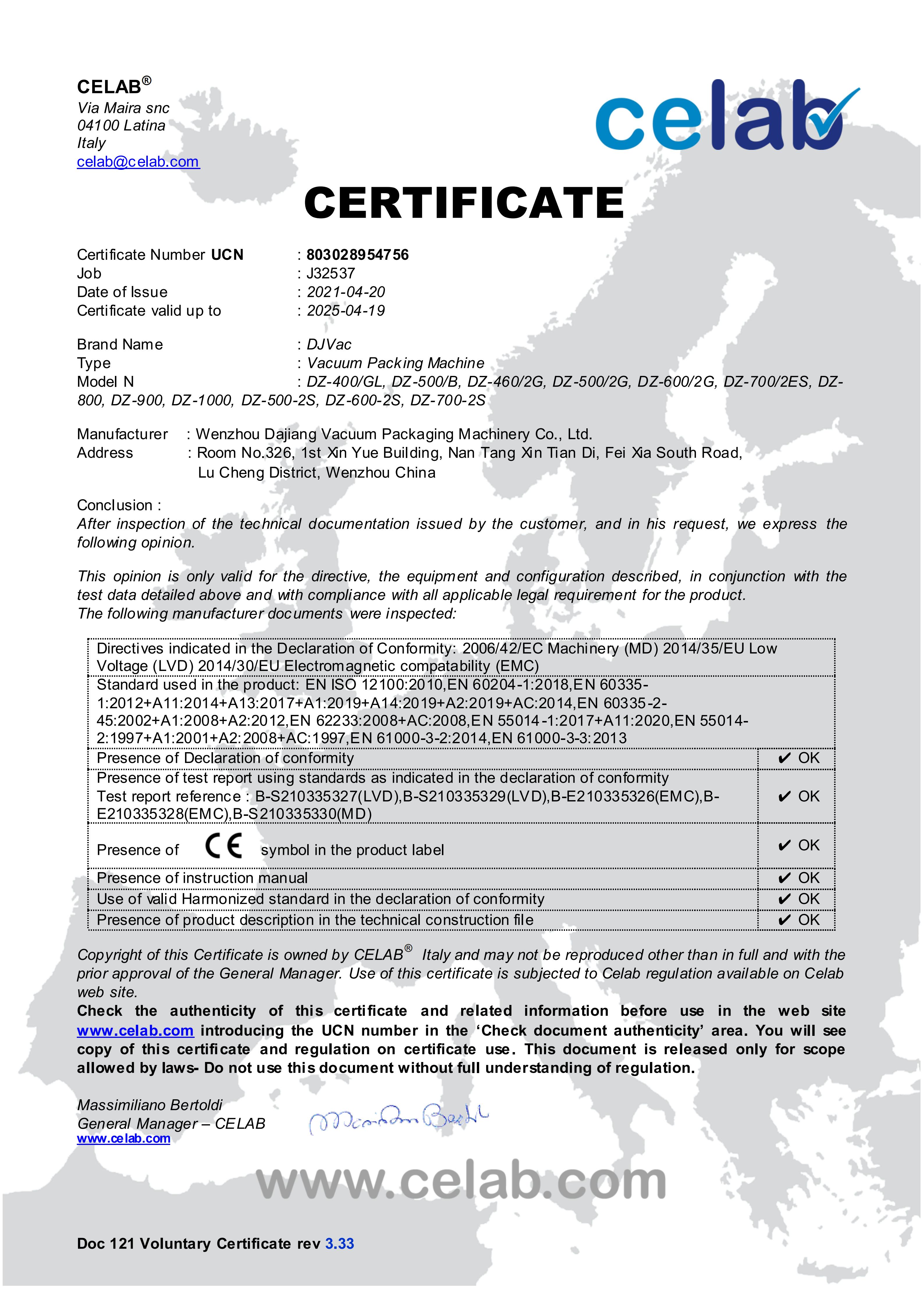 We have brilliant achievements under the support and trust of our customers as well as the hard-working of the DAJIANG staff. We awarded “2018-2019 Foreign Trade Credit Enterprise”, are a new high-tech enterprise and have several patent certificates, and are one of China Food And Packaging Machinery Industry Association director units.