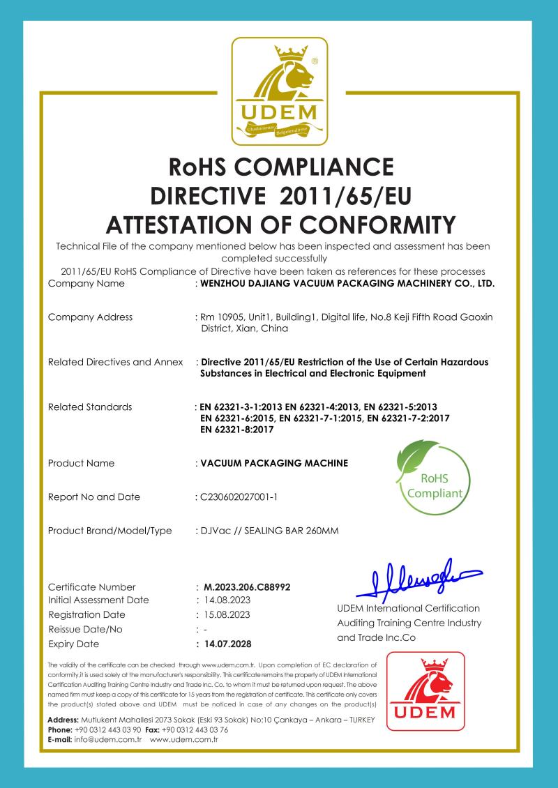Wenzhou Dajiang Vacuum Packing Machinery Co., Ltd. was established in 1995. It is an integrated set of industry and trade companies, specializing in the research, manufacturing, and marketing of packaging machines. After more than 20 years of continuous development and innovation, Wenzhou Dajiang has become China's leading manufacturer of packaging machinery equipment. Especially in the field of vacuum packaging machines, Wenzhou Dajiang has become the first choice of foreign customers. What’s more, Wenzhou Dajiang supports custom services. According to customers’ reasonable requirement, we can remold machine, which is different from an ordinary packaging company.
